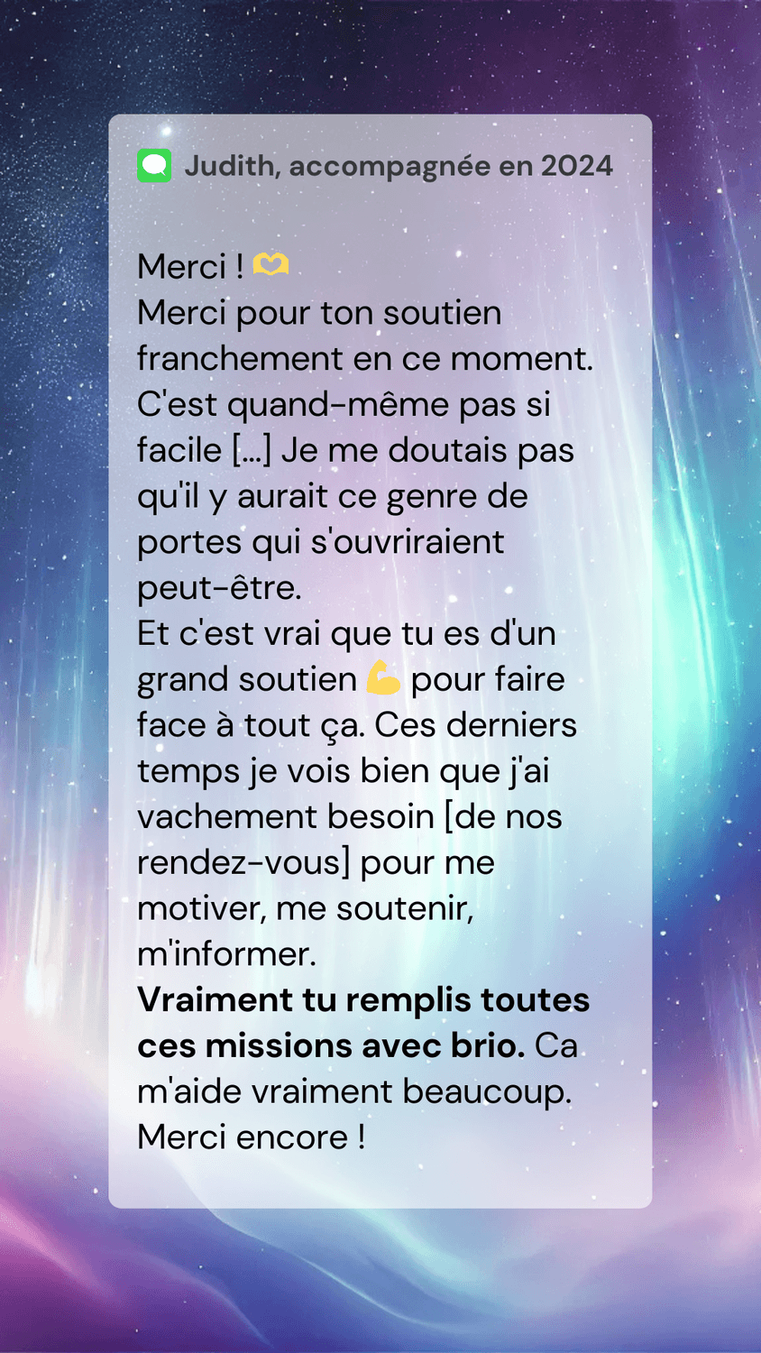Après 10 ans de conseil en image et un burn-out... il faut se reconstruire. Odyssée lui apporte la structure nécessaire pour se réinventer, lui apporter un nouvel élan et reprendre le développement de son business.